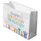 This festive gift bag design brings all the beloved Slumberkins characters together in one cheerful birthday scene. Lined up along the bottom edge, each character adds their own unique personality and charm, creating a warm and welcoming party look. The bold “Happy Birthday” message in playful, multicolored lettering stands out beautifully against the clean white background, while scattered star accents add a fun, celebratory touch. The customizable name makes the design feel extra special and perfectly tailored for the birthday child. Ideal for Slumberkins-themed celebrations, this coordinated design ties the entire party together with color, character, and joy.