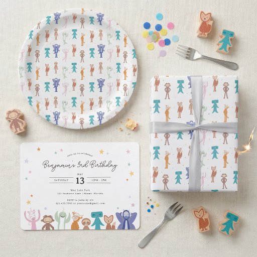 Dieses fröhliche Slumberkins-Design zeigt eine fröhliche Reihe beliebter Slumberkins-Figuren, die unter sanften Sternen und verspielten Akzenten versammelt sind. Die Illustration verwendet eine helle, aber sanfte Farbpalette, die warme Neutöne mit Pastelltönen kombiniert, um eine fröhliche und einladende Atmosphäre zu schaffen. Das ausgewogene Layout hält den Fokus auf die Charaktere am unteren Rand, während gleichzeitig anpassbare Geburtstagsdetails in einem sauberen, modernen Stil deutlich dargestellt werden. Mit seiner verspielten Energie und dem charmanten Slumberkins-Charme ist dieses Design perfekt für Geburtstagsfeiern von Kleinkindern und im frühen Kindesalter und bietet einen unterhaltsamen, inklusiven und herzlichen Look, den Familien lieben werden.