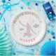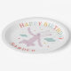 This magical paper plate design features the enchanting Slumberkins Unicorn in a joyful, floating pose surrounded by soft clouds and tiny colorful stars. The rainbow-toned “Happy Birthday” lettering arches across the top, while the customizable name below adds a sweet and personal touch. The gentle pastel palette of blush pink, soft blue, and subtle rainbow accents creates a dreamy, whimsical feel that’s perfect for little ones. The round layout keeps the design balanced and eye-catching, making it ideal for unicorn-themed birthdays, baby celebrations, or magical milestone parties. This plate coordinates beautifully with matching Slumberkins décor to create a charming and cohesive party table.