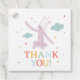 This magical thank you gift tag design features the enchanting Slumberkins Unicorn in a joyful, floating pose surrounded by soft clouds and tiny colorful stars. The rainbow-toned “Thank You!” lettering adds a bright and celebratory touch, while the gentle pastel palette keeps the overall look sweet and whimsical. The clean square layout makes it perfect for tying onto favor bags, treat boxes, or birthday gifts, adding a polished and coordinated finishing detail. Ideal for unicorn-themed birthdays, baby celebrations, or magical milestone parties, this tag brings a charming Slumberkins touch to every thoughtful send-off.