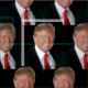 Portrait Foto von Präsident Donald Trump, Wiederholung von Mustern auf Stoff. Stilvolles und modernes Design. Feiern Sie unseren Präsidenten oder schaffen Sie etwas, das Sie in einer Kundgebung des Wahlkampfes mit diesem festlichen Trump-Stoff zum Nähen und Handarbeiten tragen können.