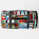 Travel with intensity using the Collapse Reflection Small Duffel Bag, featuring a vibrant abstract composition of vertical and horizontal streaks, layered textures, and glowing outlines. With bold contrasts of red, blue, green, black, and white, this design evokes motion, emotion, and complexity — a visual metaphor for collapse and rebirth.