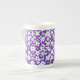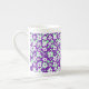 Small floral pattern mint and purple bone china mug featuring, small pattern white and green flowers on a purple background.