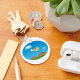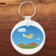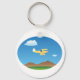 Ein kleines, gelbes Flugzeug, das über eine Landschaft fliegt. Dieses Design sieht auf diesem Schlüsselanhänger wirklich effektiv aus