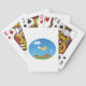 Ein kleines, gelbes Flugzeug, das über eine Landschaft fliegt. Dieses Design sieht auf diesen Spielkarten wirklich effektiv aus