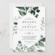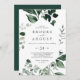 Dieses smaragdgrüne Ganze in einer Einladung ist perfekt für eine Hochzeit. Das elegante und dennoch rustikale Design besticht durch stimmungsvolle, dunkelgrüne Blätter und Eukalyptus mit einem modernen böhmischen Waldgefühl. Rett Papier, indem man die Details auf der Rückseite der Hochzeitseinladung statt auf einer separaten Kapselkarte angibt. Geben Sie auch die UAWG-Informationen an, ob Ihr Gast elektronisch antworten wird (optional).