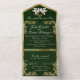 Smaragdgrün, goldene Blätter, Tauben und Herz All In One Einladung