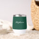 Elegant, rustikal, einfach, Monogramm, minimalistischer Name, smaragdgrüner thermischer Weintumbler. Schönes, trendiges Design.