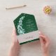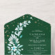 Smaragdgrüne und weiße blühende Mondgarage mit Herzen Hochzeit All in One Invitation. Im Mittelpunkt steht dabei die wunderschöne weiße Gartenanlage. An den Kanten ist auch ein Goldkonfetti. Die UAWG ist abnehmbar.