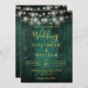 Diese smaragdgrüne rustikale Stallenholz-Saitenleuchten Hochzeitseinladung kann mit Ihren Informationen in der modernen Goldtypografie personalisiert werden. Entwickelt von Thisisnotme©