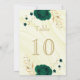elegante, anpassbare Tischnummer-Karte smaragdgrüne Blume mit ein paar goldenen Blätter Gold Tischnummer-Karte