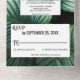 Diese elegante Schwarz-Weiß-Kalligrafie-Einladung eignet sich für eine moderne Hochzeit im Sommer. Das romantische, minimalistische Design mit einer Hochzeitsfeier in einer grünen tropischen Atmosphäre