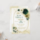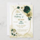 Schöne smaragdgrüne Elfenbeinweiße und goldene Blume mit goldenen Blätter auf einer goldgeometrischen Rahmen Geburtstagsfeier Einladung. Die Einzelheiten des Glitzer werden simuliert. Für weitere Informationen klicken Sie bitte auf die obige Sammlung oder kontaktieren Sie mich.