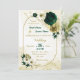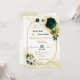 Schöne botanische Hochzeitseinladung mit smaragdgrünen, Elfenbeinweiß- und Goldgold-Blume mit goldenen Blätter auf einer Goldkapsel. Die Einzelheiten des Glitzer werden simuliert. Es eignet sich sowohl für Hochzeiten als auch für Verlobungen. Für weitere Informationen klicken Sie bitte auf die obige Sammlung oder kontaktieren Sie mich.