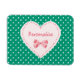 Ein niedliches smaragdgrünes Polka-Punktmuster mit einem herzförmigen Pflaster in rosa und mit einem hübschen rosa Bogen verziert. Persönlich gestalten, indem Sie Ihren Namen zu dieser angesagten Farbe des Jahres hinzufügen. Ideal für das stilvolle Teenager-Mädchen!