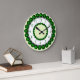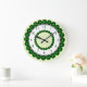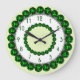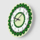 Eine wunderschön elegante Uhr, die nicht nur einen, sondern zwei Kreise von Smaragden auf einem Hintergrund von hellgrün, weiß und grau druckt. Die Zahlen werden in einem eleganten Schriftart und in einem koordinierenden dunkelgrünen Farbton gemacht.