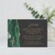 Der links Rand dieser eleganten, modernen Hochzeitsdetails-Umzäunungskarte zeichnet sich durch eine smaragdgrüne Aquarellgrenze aus, die mit dem vergoldeten Glitzer der Imitate bestickt wurde. Der Titel ist in chic kalligrafisches Skript, mit dem anpassbaren Text unten in goldfarbenem Kopperplate-Schriftart auf einem schieferschwarzen Hintergrund. Auf der Rückseite ist ein passendes schwarz-goldfarbenes Agerat-Design zu sehen.