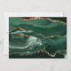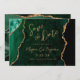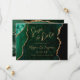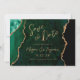 Diese elegante Hochzeitskarte Save the Date ein Hintergrundbild eines smaragdgrünen Aquarells, bestickt mit Imitaten goldenen Glitzer. Der anpassbare Text kombiniert goldfarbene moderne Handschrift, Copperplate und kursiven Schriftart. Die Rückseite ist mit einem smaragdgrünen und goldgelben Agate Design abgestimmt.