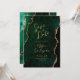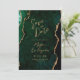 Diese elegante Hochzeit Save the Date zeigt ein Hintergrundbild des smaragdgrünen Aquarelles mit vergoldetem Imitat Glitzer besticht. Der anpassbare Text kombiniert goldfarbene moderne Handschrift, Copperplate und kursiven Schriftart. Die Rückseite ist mit einem smaragdgrünen und goldgelben Agate Design abgestimmt.