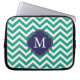 Smarald Green & Blue Zigzags-Muster Monogram Laptopschutzhülle