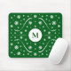 Ein hübsches Mauspad in Smaragdgrün mit einem Muster aus Power der weißen Blume, einem dunkelgrünen Monogramm-Buchstaben und Blumenschmuck. Ideal, um Ihren Schreibtisch im Büro oder für einen Arbeiter bei der Zuhause zu dekorieren!
