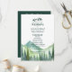 Das wunderschöne Watercolor Mountain Forest Wedding Design ist ideal für Paare, die ihren besonderen Tag inmitten der Natur gewollt haben. Dieses malerische Design spiegelt das Wesen einer Hochzeit in Urlaubsort in den Bergen wider, mit einer wunderschönen Aquarelllandschaft als Kulisse. Die tiefgrüne Waldfarbe und die smaragdgrüne Farbe verleihen dem Hotel ein natürliches, rustikales Ambiente, das sich perfekt für eine Landhochzeit im Hinterwald oder ein Natur-Camping-Abenteuer eignet. Im Hintergrund thronende Pinienbäume und dieses Design wird Sie und Ihre Gäste in eine ruhige Waldlandschaft führen.