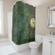 Umgestalten Sie Ihr Bad in ein Dampfbad mit diesem Duschvorhang mit einer alten Uhr in einer rustikalen smaragdgrünen Kulisse. Es ist ein Nicken an die Eleganz einer vergangenen Zeit. Bestelle noch heute!