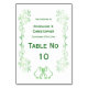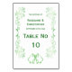 Grüne Hochzeitsbrunnen Tischnummer Design. Sie können diese smaragdfarbene Hochzeitsstiftung mit Ihren eigenen Hochzeitsdetails anpassen. Wenn Sie Hilfe bei der Anpassung benötigen, kontaktieren Sie uns über den Link auf dieser Seite. Glocken-Scrollwork-Design personalisierte grün gefärbte Hochzeitsfeier Tischnummer