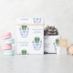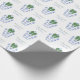 Wasserfarbenblaue und weiße Ingwerjar mit einem eleganten dunkelgrünen Bogen. Diese Elemente wurden wirklich von Ihnen handgemalt, bevor sie in ein sich wiederholendes Muster mit der Möglichkeit, personalisierten Text hinzuzufügen angeordnet wurden.