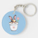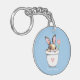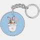 Smart Bunny mit Blume & Herz auf Light Blue Schlüsselanhänger