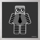 Diese niedliche und smarte geek Roboter-Illustration bietet einen lustigen Roboter mit grauen und schwarz gestreiften Beinen und Armen, dicken gerippten schwarzen Gläsern und einer stilvollen Krawatte! Dieses Roboter-Kunstwerk aus schwarz-weiß Cartoon ist das ideale Geschenk für Roboter-Liebhaber und alle, die originale Grafikkunst Liebe!