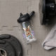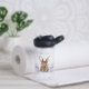 Dieser braune, sassy-braune Hase trägt eine stilvolle Blau-Weiß-Brille mit einer passenden Bogen-Krawatte. Das Kaninchen ist auf beiden Seiten von schönen violetten Blumen umgeben. Oben ist Platz für einen Namen. Dieses Design ist vorne und hinten.