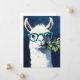 Spielerische Drehung zu süße Tier Kunst und Spaß mit einer sonderbaren weißen Lamas rocken aquamarine Brille und mit einem grünen Zweig.
