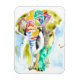Dieser Aquarelldruck zeichnet sich durch einen farbenfrohen Elefanten in Brillen aus | Von Jennifer Goldberger. Bild-ID: 122135GG