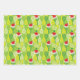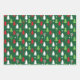 Grün, Gelb und Weiß 🎄 Weihnachten 🎾 Tennis Packpapier Blätter. Niedliche Tennisschläger mit dem Hut des Weihnachtsmannes und knisternde Weihnachtswünsche auf frisch grünem Hintergrund.