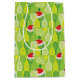 Grün, Gelb und Weiß 🎄 Weihnachten 🎾 Tennis Mittlere Geschenktasche. Niedliche Tennisschläger mit dem Hut des Weihnachtsmannes und knisternde Weihnachtswünsche auf frischem grünem Hintergrund.