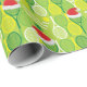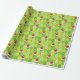 Grün, Gelb und Weiß 🎄 Weihnachten 🎾 Tennis Packpapier Rolle. Niedliche Tennisschläger mit dem Hut des Weihnachtsmannes und knisternde Weihnachtswünsche auf frischem grünem Hintergrund.