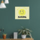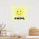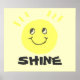 Ein niedliches gelbes Gesicht mit dem Wort glänzt unter Schwarz. Erinnern Sie sich und alle anderen daran, Ihr Licht lassen.