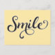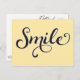 Senden Sie eine Nachricht, um ihnen Hi mit einer unserer eigenen Postkarten zu sagen. Das Wort "Lächeln" auf der Vorderseite ist mit einem weichen gelben Hintergrund mit handgeschriebenen Buchstaben verziert. Passen Sie die Rückseite mit Ihrer Adresse an. Sehen Sie sich unsere komplette Auswahl an Grußkarten in unserem Zazzle-Shop an!