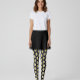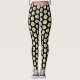 These vibrant leggings feature a deep black background covered with a repeating pattern of white daisies. Each flower has a bright yellow classic smiley face at its center. The design is playful and inspired by 70s retro fashion, perfect for those who love a cheerful and positive style during workouts or leisure time.