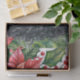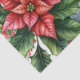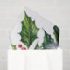 This botanical Christmas-themed tissue paper features a smiling Black woman with red lips wearing a Santa hat and Santa-inspired dress. The festive beauty is framed by hollies and poinsettia plants, highlighting the X-mas holiday theme.