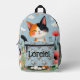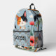Smiling Calico Cat in Blooming Garden Bedruckter Rucksack