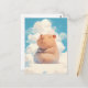 Smiling Capybara Sitting on Soft White Cloud Postkarte