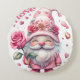 Smiling Gnome Holding a Pink Rose Rundes Kissen