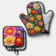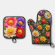 Description bring a garden of happiness into your home with a smiling meadow kitchen set featuring a vibrant collection of colourful blooms, including roses, daisies and tulips. Each flower has its own adorable cheerful face to brighten your day the potholders showcases a bold close-up cluster of these happy floral friends while the matching oven mitt features and all over metal pattern against a lush green background resistant and high-quality. This set is perfect for adding a touch of whimsical joy to your cooking routine