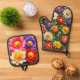 Smiling meow whimsical happy flower oven, mint and ofenhandschuh & Topflappen-Set