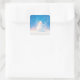 Smiling Snowman with Blue Beanie in Starry Night Quadratischer Aufkleber