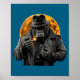 Smoking Gorilla In Trench Coat With Orange Moon Ar Poster