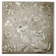 Mein traditionell asiatisch chinoiserie inspiriert Kaninchen und Vogelfliesen mit einer neuen Drehung! Die Farbe ist in rauchigen Grautönen gehalten, die an ein metallisches Glühen erinnern. Ideal für eine moderne Dekoration mit natürlichen Tier- und Blattmotiven in beliebten neutralen Farben. Die Kanten sind etwas dunkel, um die Designtiefe zu erhöhen. Zazzle ist in zwei Größen erhältlich und bietet auch Rahmen und Sake-Boxen an.
