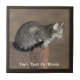 Eine rauchige, graue Tabbattacke, die am Rande eines Stuhls auf einem neutralen Hintergrund steht. Passen Sie Ihren eigenen Text an. Sie können sowohl die Schriftart- als auch die Textfarbe ändern.